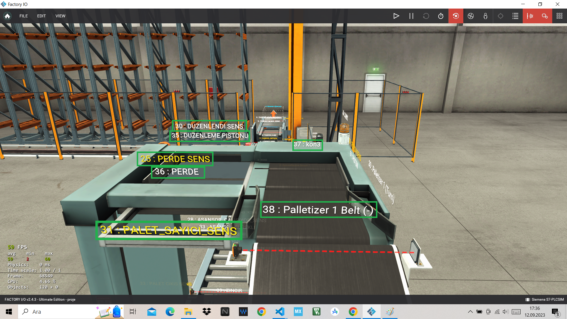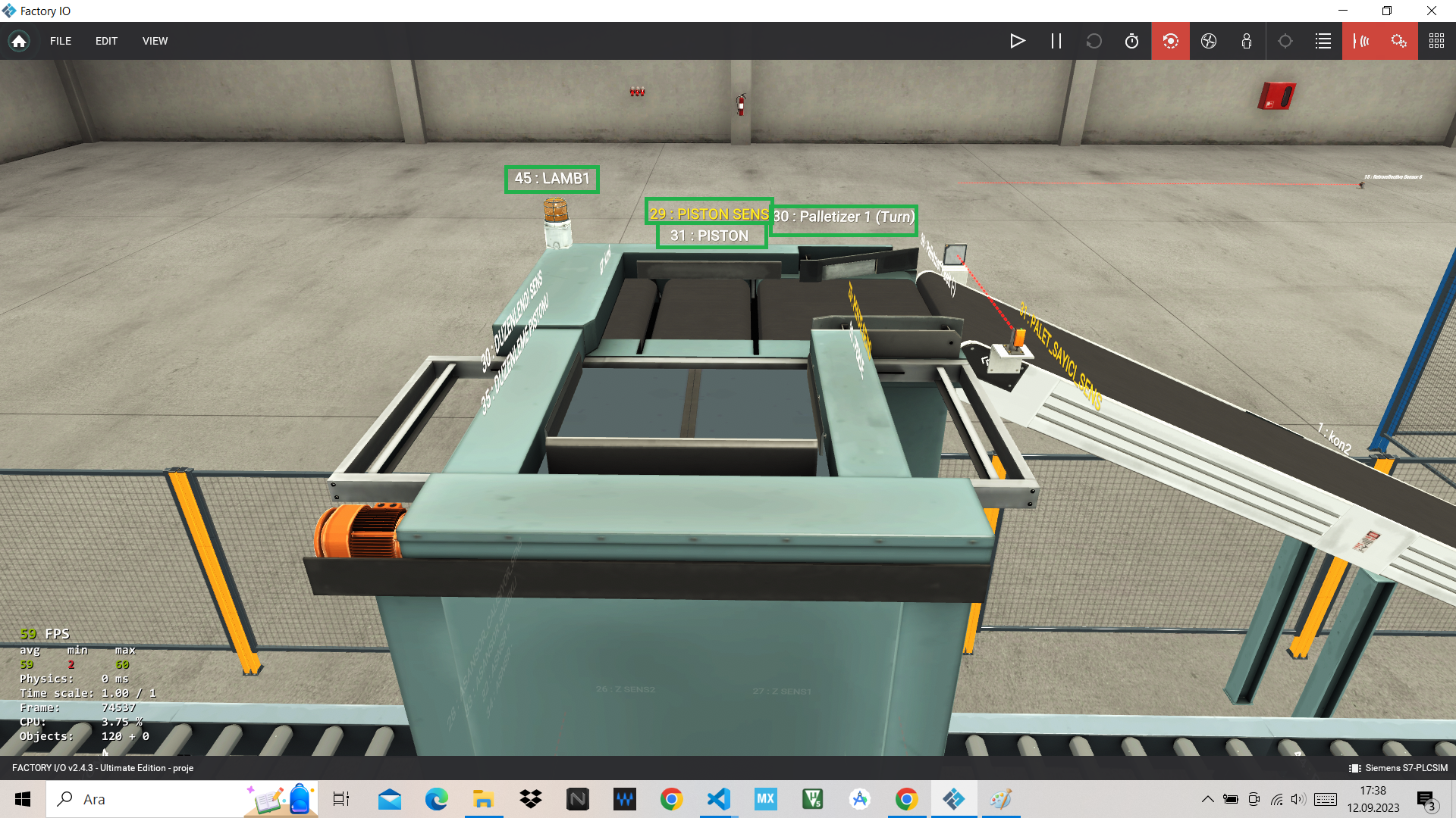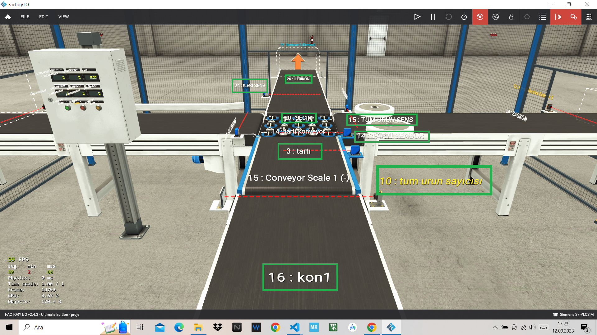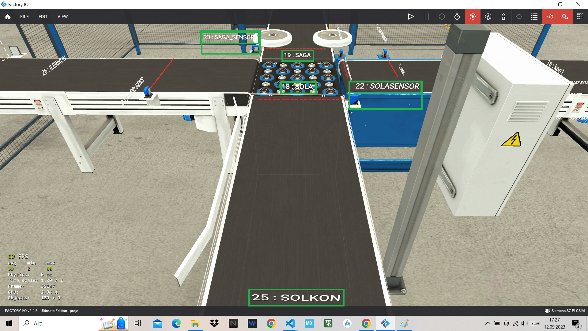 Below is the Tia Portal software. The contact names in the Tia Portal must match the Factory-io program, otherwise it will not work.