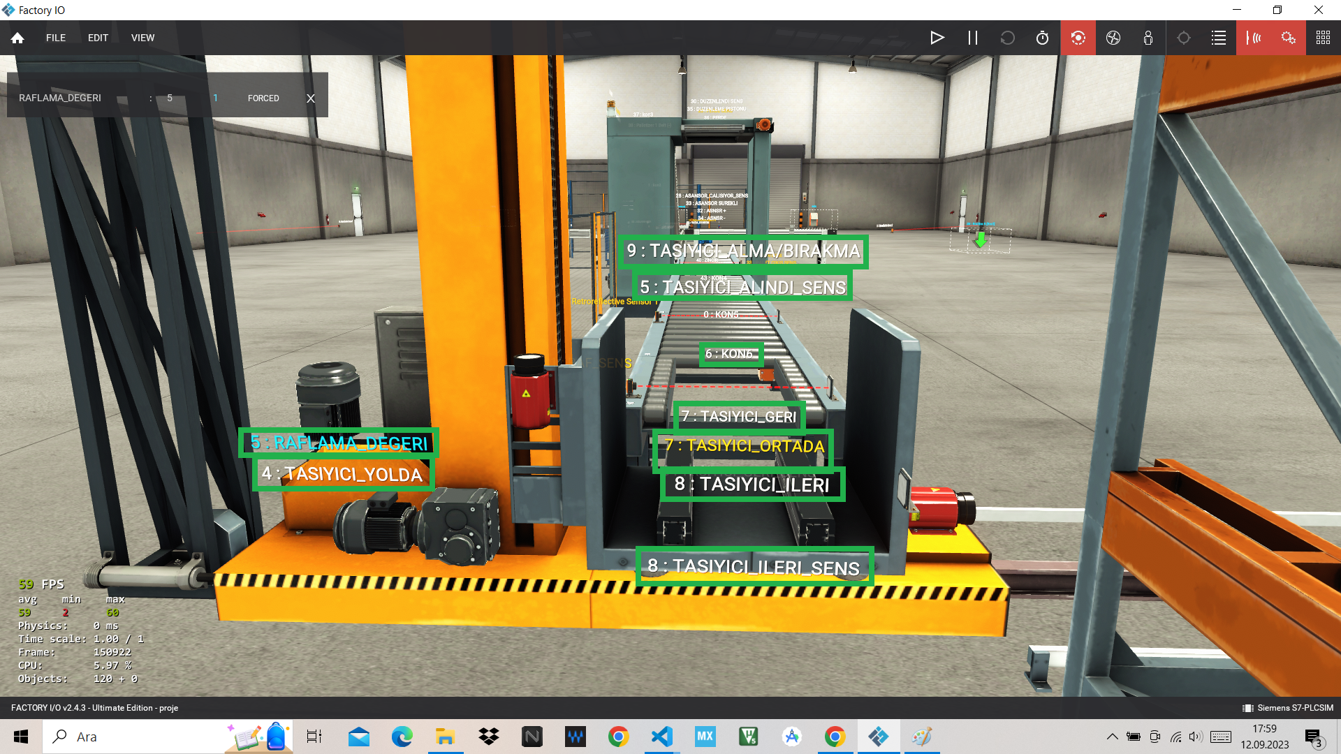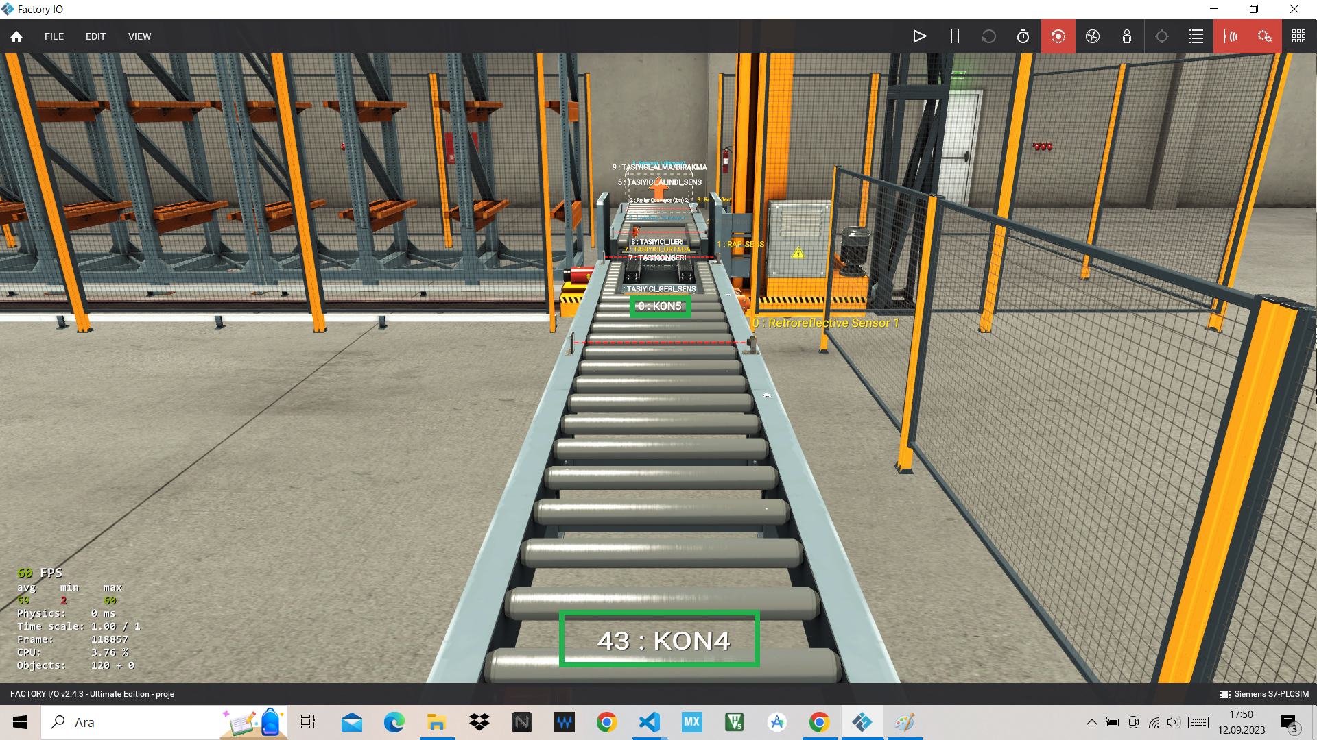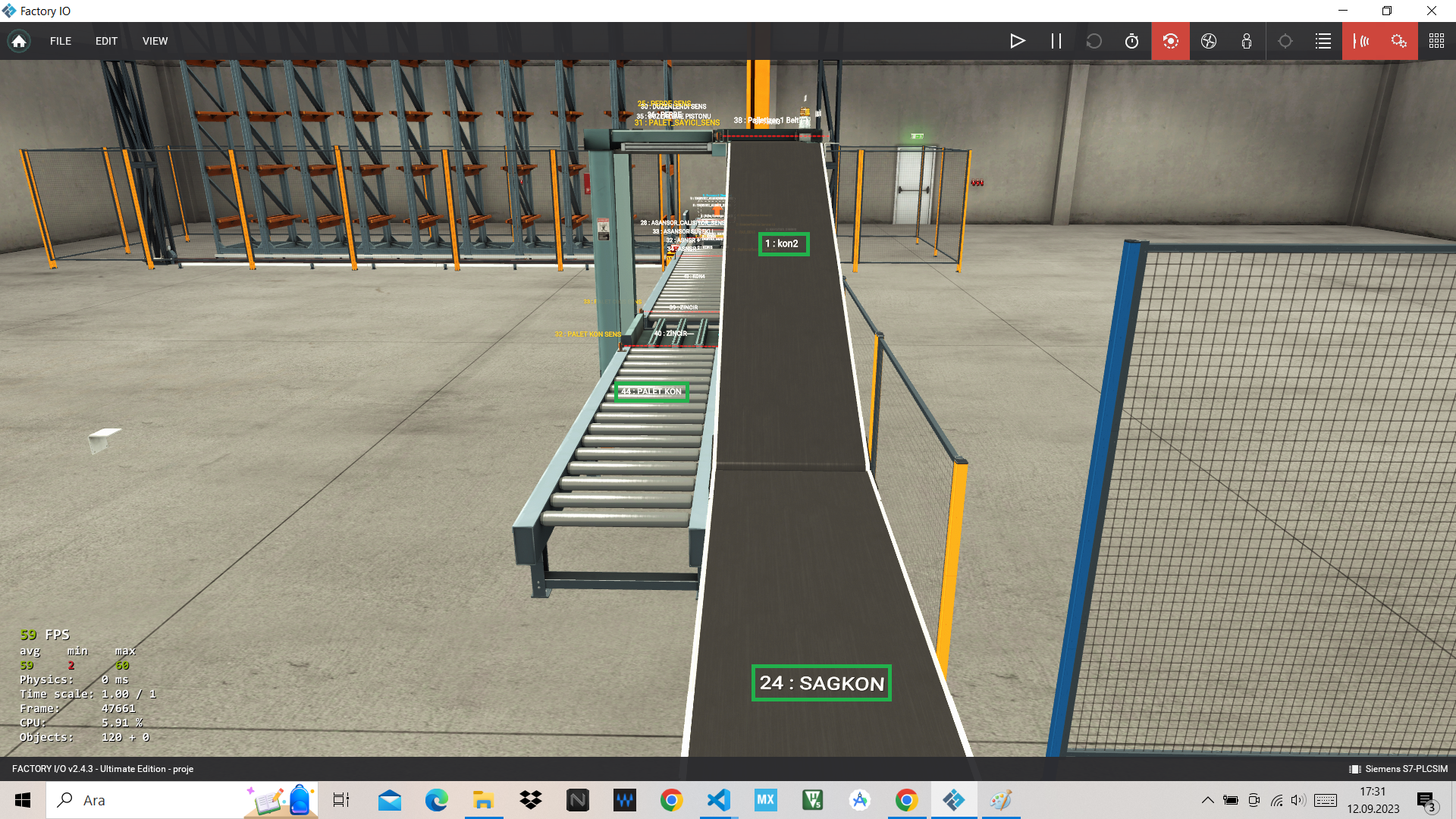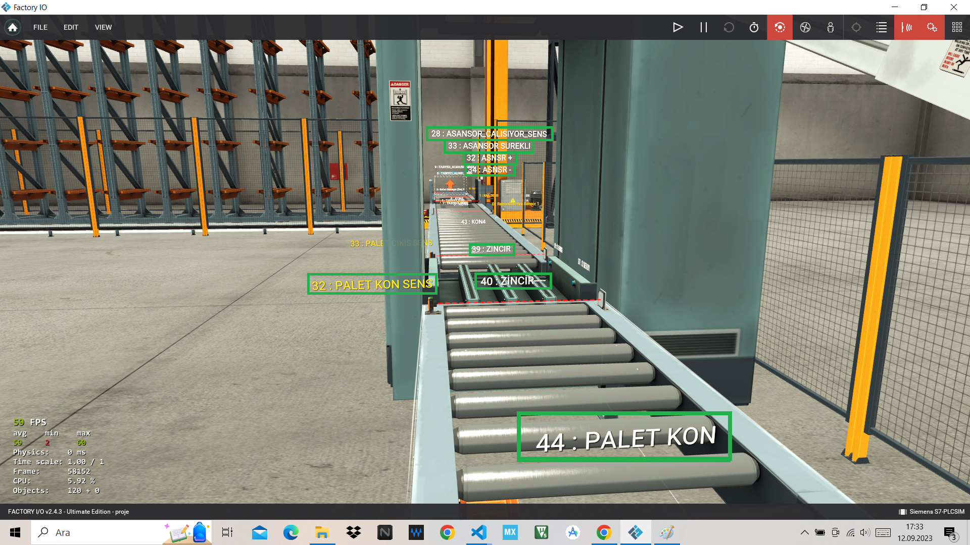 Below is the Tia Portal software. The contact names in the Tia Portal must match the Factory-io program, otherwise it will not work.