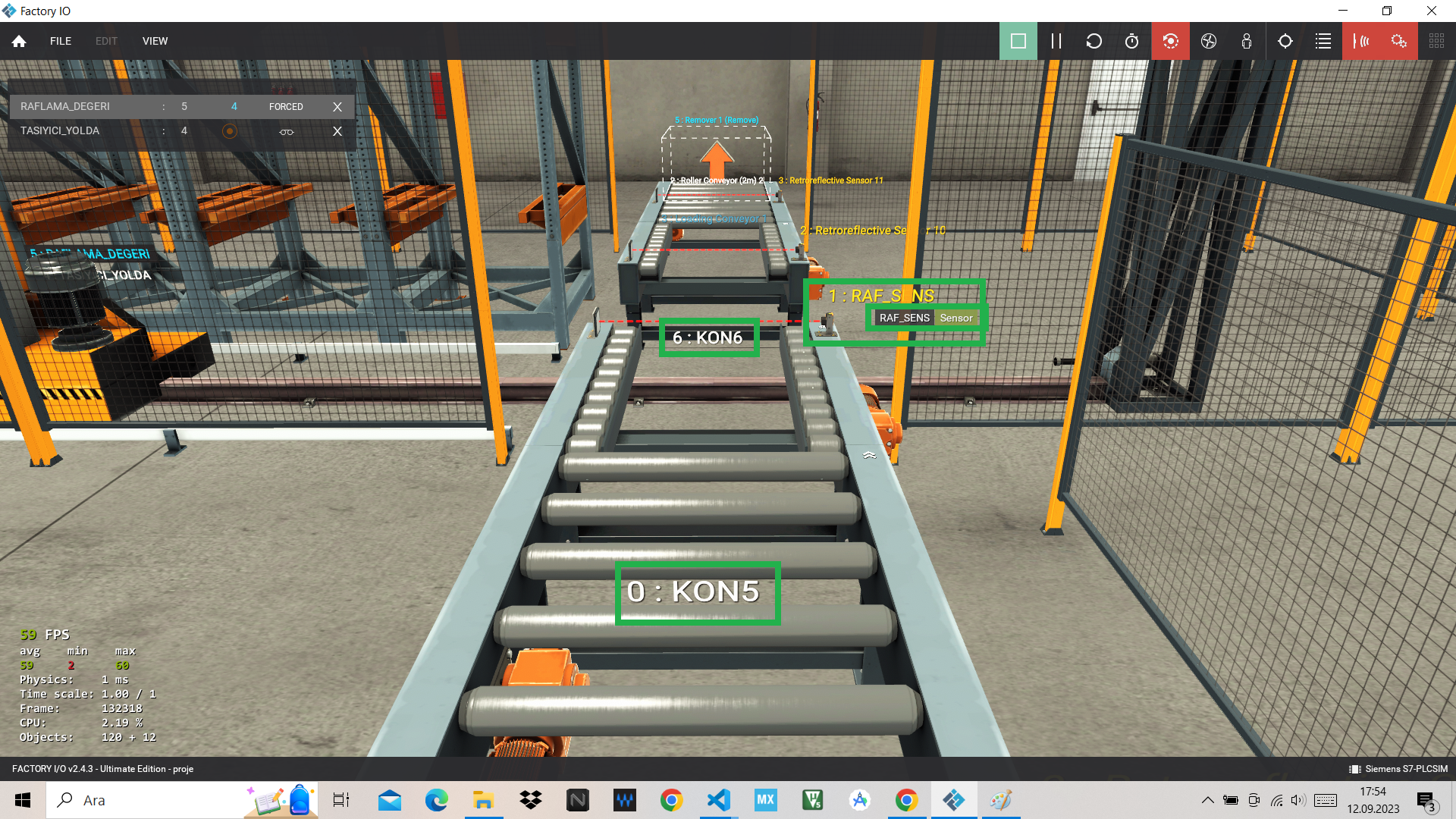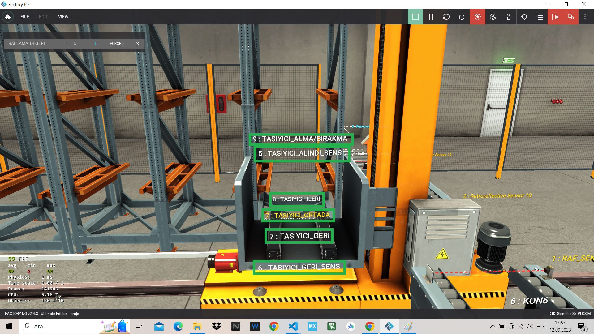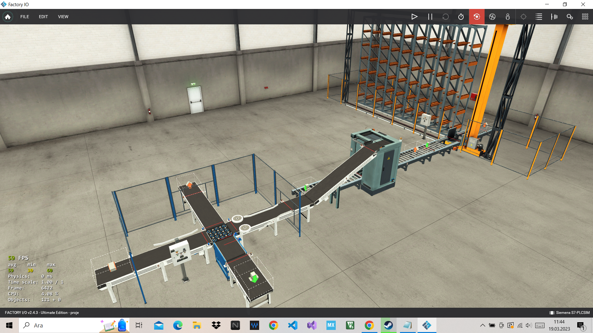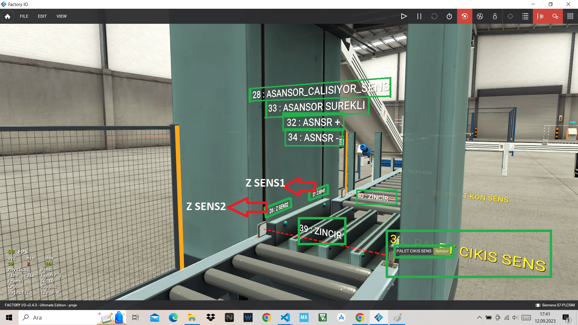 Below is the Tia Portal software. The contact names in the Tia Portal must match the Factory-io program, otherwise it will not work.