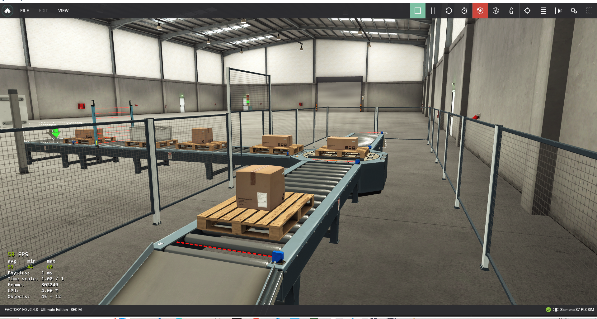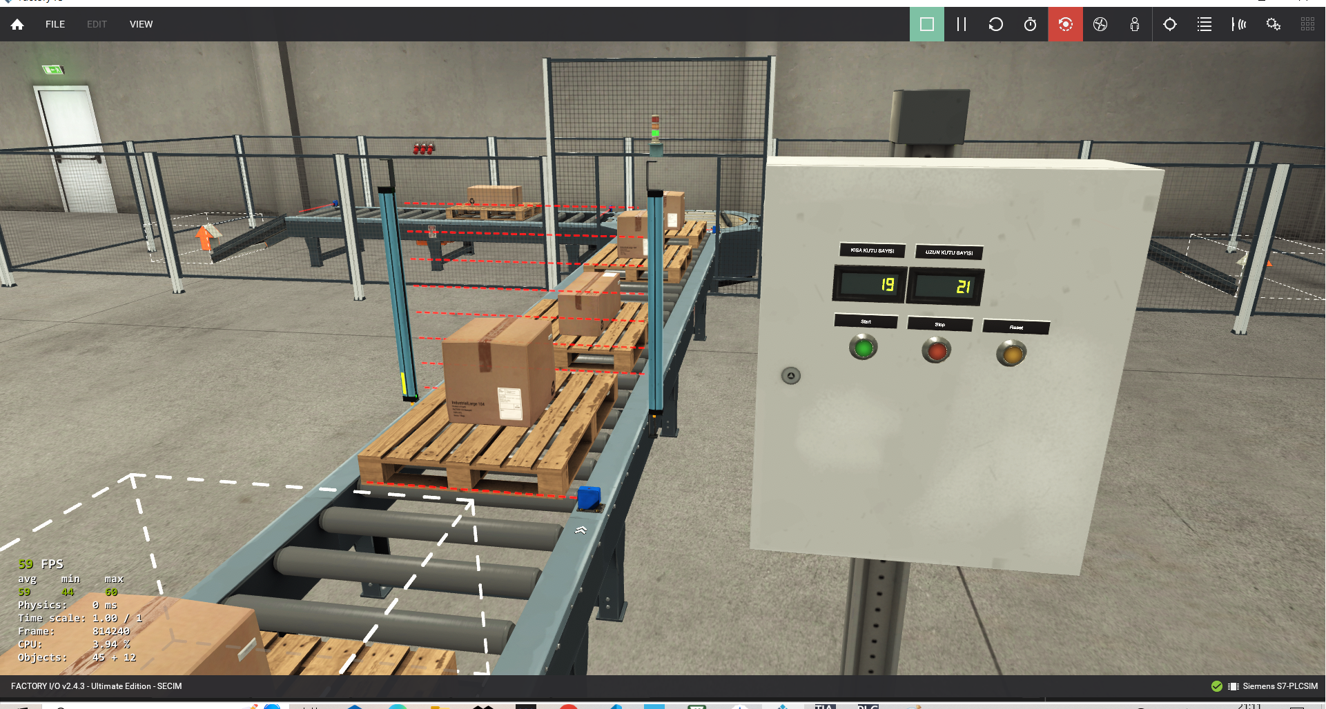 • The boxes are directed to separate conveyors. Both conveyors are equipped with sensors at their ends. As the boxes pass these sensors, they are counted.