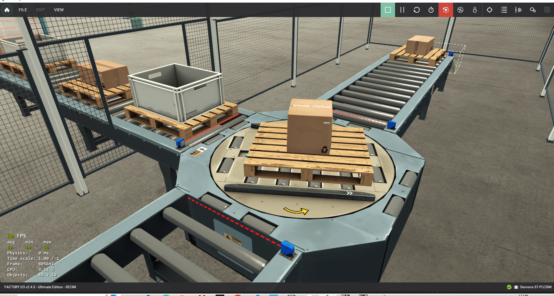 Below is the Tia Portal software. The contact names in the Tia Portal must match the Factory-io program, otherwise it will not work.